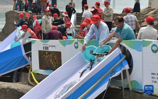 長江上游珍稀特有魚類國家級自然保護區云南段增殖放流活動在云南省水富市舉行(2021年4月23日攝)。新華社發