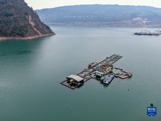 這是三峽庫區珍稀魚類馴養基地(2022年2月25日攝,無人機照片)。新華社記者 唐奕 攝