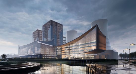 中國能建江蘇院、寬創國際和艾奕康(AECOM)聯合設計的《古運今輝向長河——無錫洛社古鎮電廠遺址改造項目》效果圖
