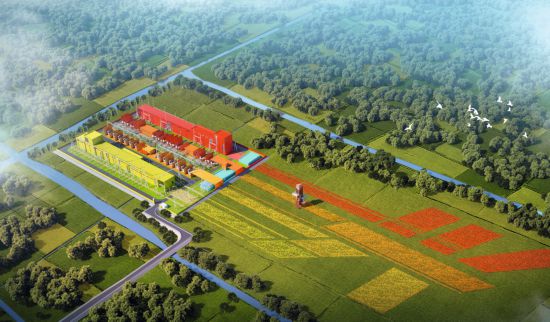 中國能建浙江院與中國美術學院聯合設計的《田野上的彩色公園——浙江長興500千伏變電站》效果圖