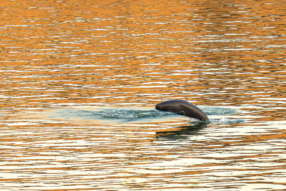 長江江豚在長江宜昌葛洲壩下游附近踏浪前行,與浪花共舞(2025年1月5日攝)。新華社記者 肖藝九 攝